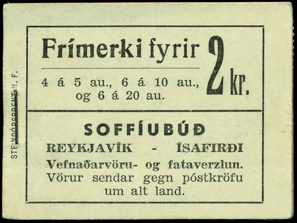 Beschreibung: Der Nennwert beträgt 2 ISK. Die Heftchen haben vier Zwischenblätter mit Werbung (beidseitig bedruckt).