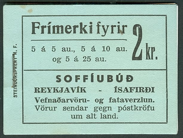 Beschreibung: Der Nennwert beträgt 2 ISK. Die Heftchen haben vier Zwischenblätter mit Werbung (beidseitig bedruckt).