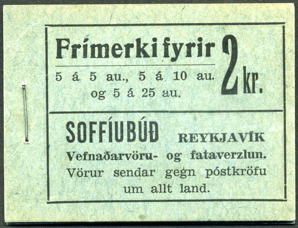 - Heftchen mit der rot-braunen 25 Aurar Marke in K 14 x 13½ Zähnung (nicht katalogisiert in Facit, MICHEL und AFA) werden bei DAKA als H14 katalogisiert, bei Þór Þorsteins als SH-9.
