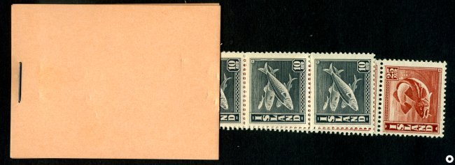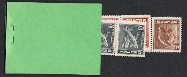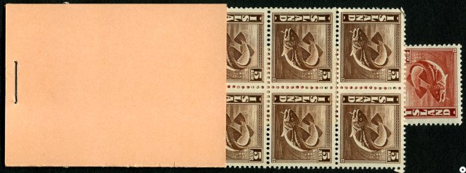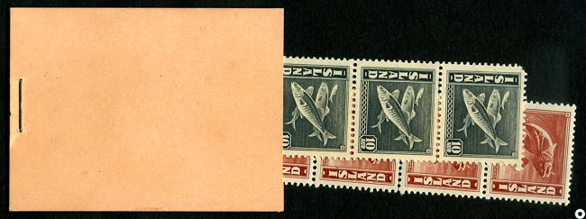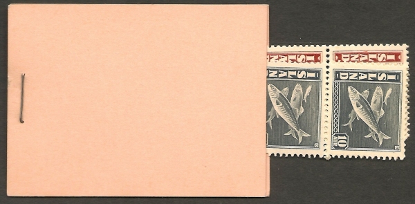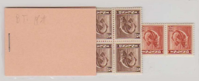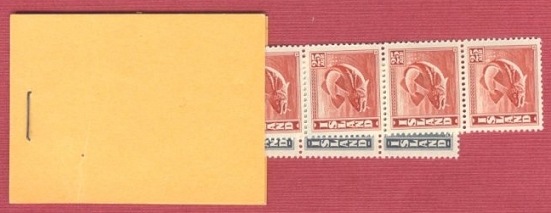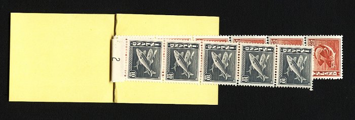 Einige Beispiele von Heftchen 8I (nach Facit): sie können sich in der Anordnung der Briefmarken (Streifen, Viererblock, etc.), der Reihenfolge der Befestigung und der Orientierung, mit der sie eingeheftet sind, unterscheiden.